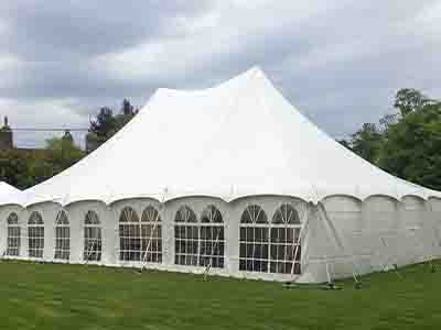 eg and Pole tents, also known as marquee tents, are classic, versatile outdoor structures that have been used for decades to host a wide range of events. These tents are designed with tall central poles that support the roof, creating a majestic and elegant appearance with high peaks. The fabric is stretched and anchored to the ground using pegs and ropes, providing excellent stability and wind resistance.