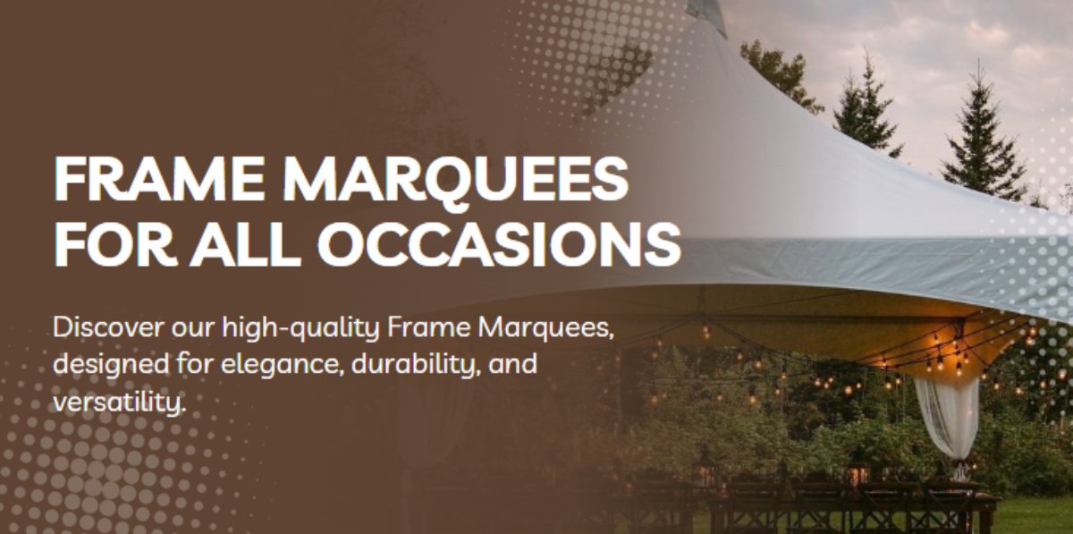 Discover a wide range of high-quality tents designed to meet all your event and outdoor needs. From elegant peg and pole tents to durable frame tents, we offer a variety of options suitable for any occasion. Whether you’re hosting a wedding, corporate event, or a family gathering, our selection is built to provide comfort, style, and reliability. Each category is carefully curated to ensure that you find the perfect tent that matches your requirements. Explore our categories and find the ideal solution for your next event!